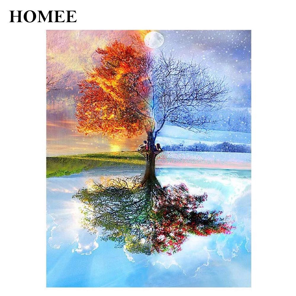 Homee Paint By Numbers Kit Without For Home Decoration 40 X 50cm The Tree With Four Seasons Classic Shopee Indonesia